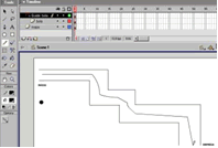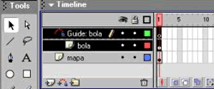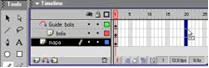 1 – Desenhe uma bola > clique na ferramenta seta > clique duas vezes na bola para selecionar contorno e preenchimento. 2 – Com a bola toda selecionada, tecle F8 ou com o botão direito do mouse escolha converter em símbolo > na caixa de diálogo escolha > nome: bola > gráfico 3 – Selecione a linha do tempo 50 > insira um quadro-chave (tecle F6) ou menu inserir > quadro-chave 4 – Mova a bola/símbolo para outro lugar > selecione na linha do tempo quadro 1 5 – Com o botão direito do mouse > escolha CRIAR INTERPOLAÇÃO DE MOVIMENTO 6 – Teste sua animação > através do controlador ou Crtl+enter EXERCÍCIO 2 - INTERPOLAÇÃO COM POLÍGONOS 1 – Desenhe um quadrado > selecione contorno e delete 2 – Selecione a linha de tempo 15 > insira um quadro-chave (F6) 3 – Clique na ferramenta ímã > tem que ficar ativada 4 – Desenhe um triângulo com a ferramenta linha sobre o quadrado e pinte de outra cor com a ferramenta tinteiro > delete o contorno do triangulo > Agora delete as partes restantes do quadrado 5 – Selecione a linha de tempo 30 > F6 (quadro chave) 6 – Desative a ferramenta ímã 7 – Desenhe uma bola sobre o triângulo > delete o contorno > pinte de uma cor diferente das demais > e delete as partes que sobram do triangulo 8 – Agora, usando a tecla shift selecione a linha de tempo > do quadro 1 ao 29 9 – Usando o inspetor de propriedades, abaixo da linha de tempo selecione interpolação de forma > e mesclar > distributivo 11 – Teste sua animação pelo controlador ou Crtl+enter EXERCÍCIO 3 - INTERPOLAÇÃO COM TEXTO 1 – Com a ferramenta TEXTO > fonte Arial black > tamanho 32 > cor roxa > digite seu nome > centralize no palco 2 – Selecione o texto com a ferramenta seta > e converta em símbolo (F8 ou botão direito do mouse) > nome: texto > gráfico 3 – Selecione a linha de tempo 50 > insira um quadro-chave (F6 ) 4 - Selecione agora a linha de tempo 1 > selecione o texto > menu modificar > dimensionar e girar: REDIMENSIONAR 20% - ROTAÇÃO: 0 5 – Selecione a linha de tempo 1 > com o botão direito do mouse > criar interpolação de movimento. 6 – Teste sua animação pelo controlador ou Crtl+enter EXERCÍCIO 4 - INTERPOLAÇÃO COM TEXTO 2 2 – Selecione o texto com a ferramenta seta > e converta em símbolo (F8 ou botão direito do mouse) > nome: texto > gráfico 3 – Selecione a linha de tempo 50 > insira um quadro-chave (F6 ) 4 - Selecione agora a linha de tempo 1 > selecione o texto > inspetor de propriedades > Cor > brilho > 80% 5 – Selecione a linha de tempo 1 > com o botão direito do mouse > criar interpolação de movimento. 6 – Teste sua animação pelo controlador ou Crtl+enter EXERCÍCIO 5 - ANIMANDO FORMAS E CORES ![]() Arquivos necessários neste exercício> clique > macaco.wmf - mulher.wmf 1 – Abra um novo arquivo 2 - Menu inserir > novo símbolo > escolha: clipe de filme > nome: metamorfose 3 – Importar o arquivo (Crtl+R) > macaco.wmf > abrir > centralizar no palco (crtl+K) 4 – Selecione o quadro 1 > criar interpolação de movimento 5 – Selecione o quadro 25 > no quadro 26 > inserir quadro estático (F5) 6 – No painel de propriedades > escolha: interpolação forma > > atenuação: 0 > mesclagem: angular 7 – Selecione o quadro 26 > inserir > quadro em branco > neste quadro > importar (CrtlR) > arquivo > mulher.wmf > abrir > centralizar a figura no palco (Crtl+K) 8 – Para criar a animação, precisamos desmembrar as figuras. Então no quadro 26 > selecione a figura > menu modificar > desmembrar (Crtl+B) 9 – No quadro 1 > selecione a figura > menu modificar > desmembrar (Crtl+B) 10 – Volte para a cena 1 > insira um quadro (F5) no quadro 50 11 – Abrir a biblioteca > insira uma instância deste símbolo no palco > Crl+L ou F11 > clique no símbolo > arraste para o palco 12 – Teste sua animação EXERCÍCIO 6 - MÁSCARAS - RETÂNGULO E FUNDO 1 – Abra um arquivo novo com 500 X 450, fundo branco. 2 – Desenhe um retângulo sem contorno e aplique um preenchimento gradiente linear que vá do azul para cor mostarda 3 – Insira um quadro (F5) na linha do tempo 40 4 - Selecione tudo e agrupe (menu > modificar > agrupar ou Crtl+G) 5 – Centralizar no palco (Crtl+K) e nomear a camada como PADRON 1 6 – Selecione o agrupamento e copie (Crtl+C) 7 – Insira uma nova camada acima e renomeie como PADRON 2 8 – Oculte a camada PADRON 1 (clique no olho) e selecione a linha 1 de tempo na camada PADRON 2 e cole a figura copiada (Crtl+V) 9 – Mantenha a figura selecionada > centralize no palco (Crtl+K) e vá ao menu modificar > transformar > inverter horizontalmente 10 – Oculte a camada PADRON 2 e insira nova camada acima e dê o nome de TEXTO 11 – NESTA CAMADA USE AS RÉGUAS/GUIAS para direcionar o texto na área do retângulo (menu exibir, réguas e use as guias) > digite SEU NOME > arial black > 18 e arraste para o lado esquerdo do palco > Dê F8 e crie um símbolo gráfico de nome texto 12 – Insira um quadro-chave na linha tempo 40 13 - arraste o texto para o lado direito do palco > selecione a linha de tempo 1 > criar interpolação de movimento 14 – Mantendo selecionada a linha de tempo 1 desta camada > clique na camada TEXTO > botão direito do mouse > escolha MÁSCARA. 15 – Exiba todas as camadas e teste sua animação (Crtl+enter) VARIAÇÃO DO EXERCÍCIO - FUNDO COM DESENHOS: 1 – Abra um arquivo novo com 320 X 240 > fundo preto. 2 – Com a ferramenta pincel > faça vários desenhos com cores e tamanhos diferentes na área de trabalho mais ou menos como está abaixo: ![]() 3 – Selecione a linha do tempo 40 e insira um quadro > F5 4 – Nomeie esta camada como DESENHOS > e insira uma nova camada acima, nome: TEXTO 5 – Ocultar a camada DESENHOS 6 – Volte para a camada TEXTO e digite seu nome > Arial Black > 32 7 – Selecione o texto > F8 para converter em símbolo > gráfico > nome: texto 8 - Mova o texto para a parte superior à esquerda no palco>insira um quadro-chave (F6) na linha de 